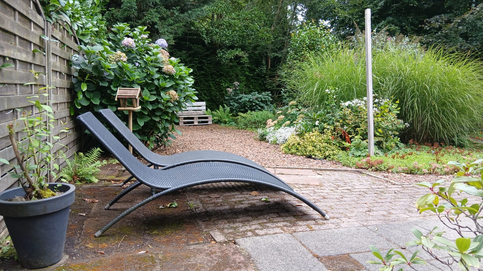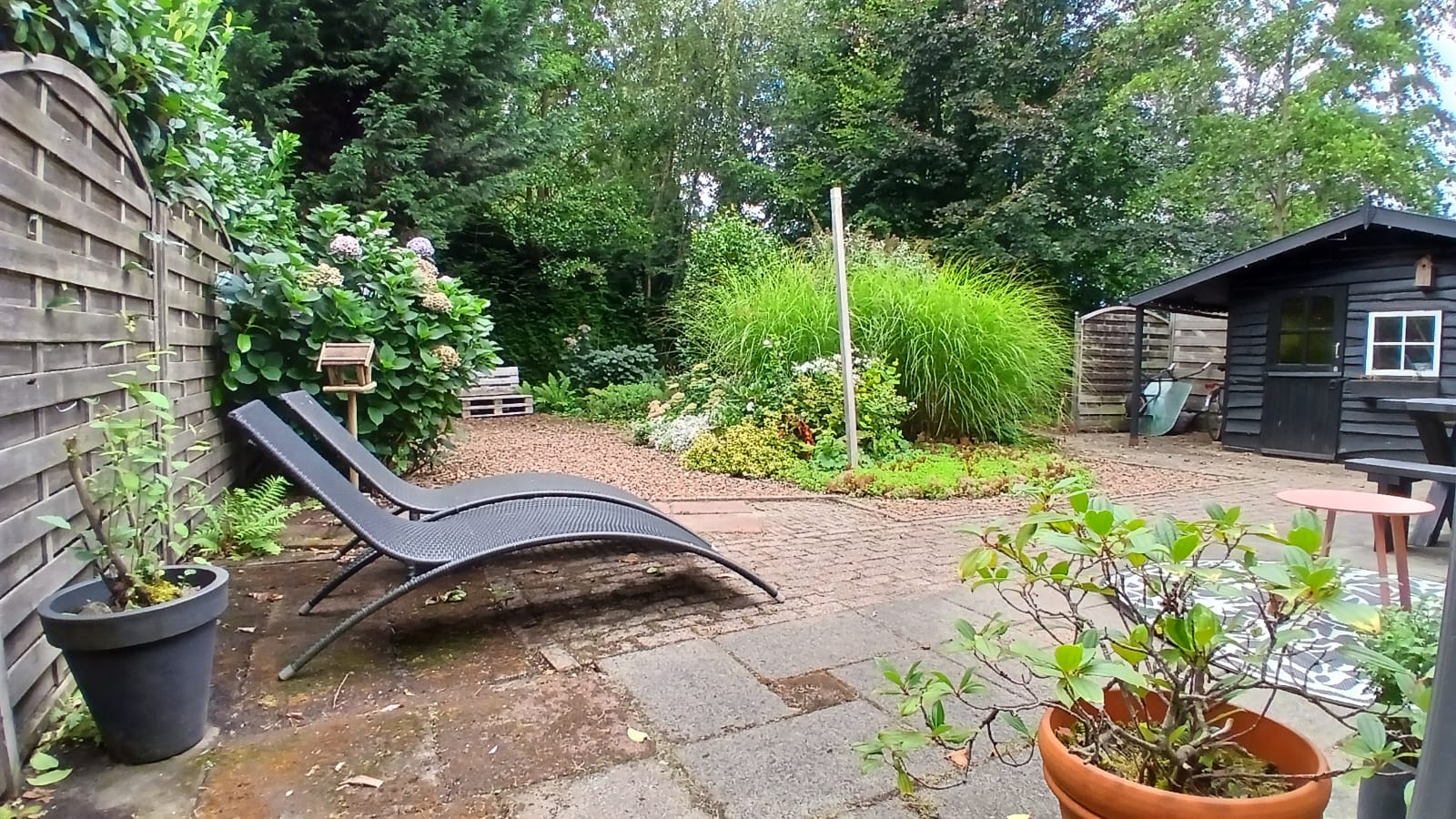 Gedurende de dag zijn er op het perceel zowel zon- als schaduwplekken. Vanaf het verharde terras kijk je uit op een ruime, bloeiende tuin. Dankzij de hoge beplanting langs de perceelgrens geniet je van optimale privacy. Op het perceel staat ook een schuur, ideaal om fietsen en (tuin)gereedschap droog te stallen.