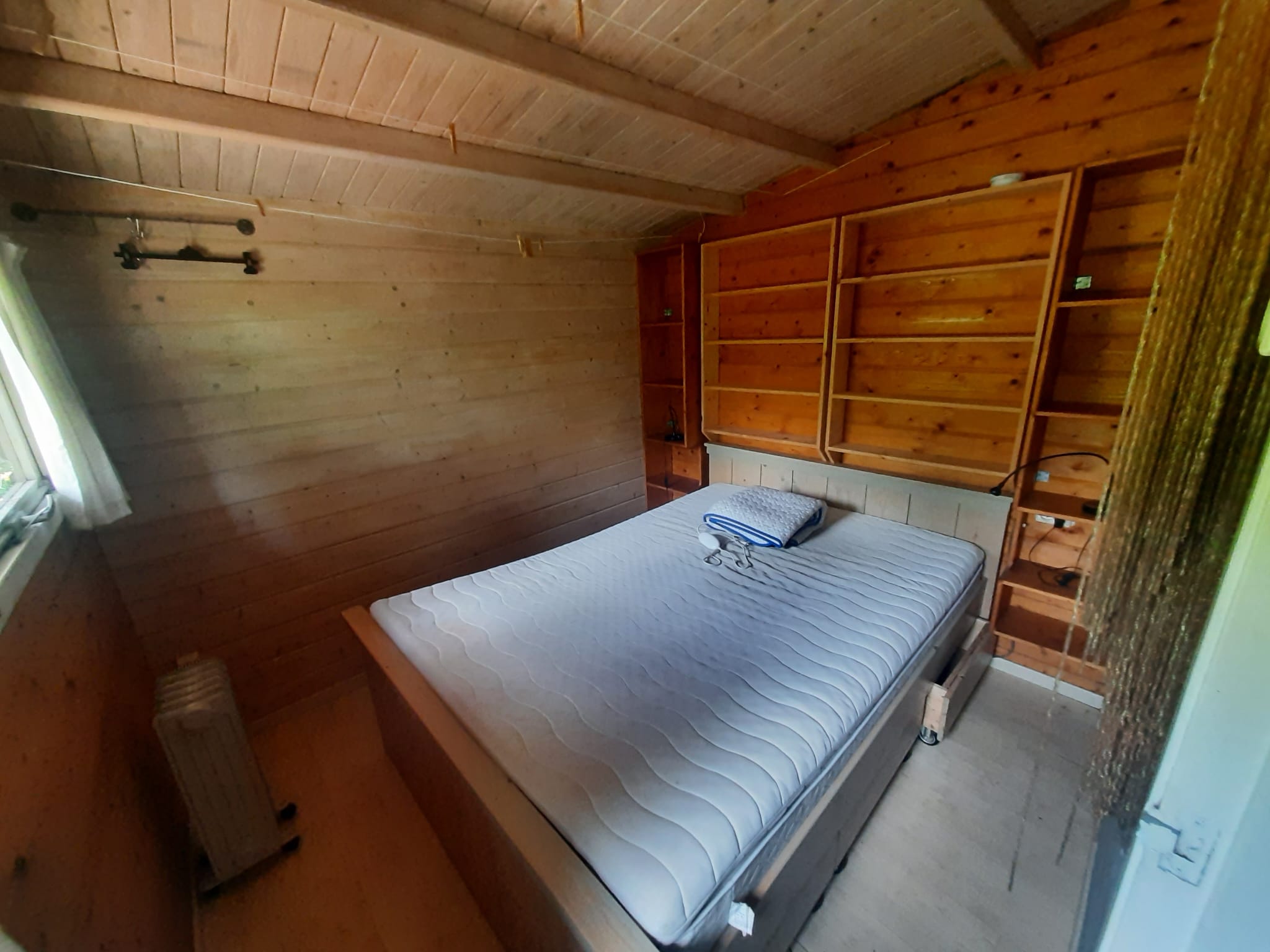 Aan de waterkant ligt een steiger waarvan u kunt genieten van het uitzicht over een klein meertje. Dit huisje heeft met de oriëntatie parallel aan het water een unieke ligging op ons terrein. Dit zorgt voor meer privacy op uw perceel.