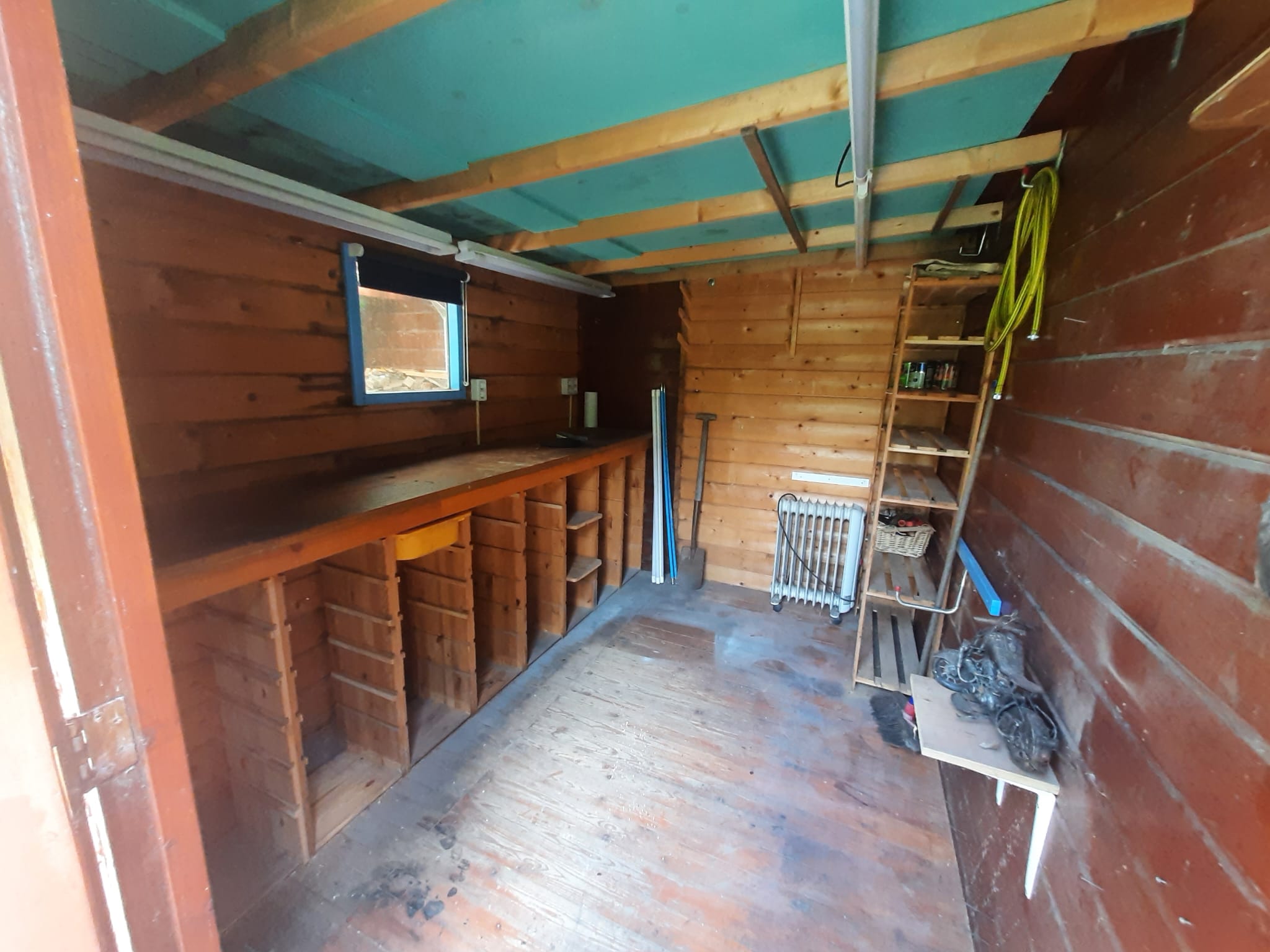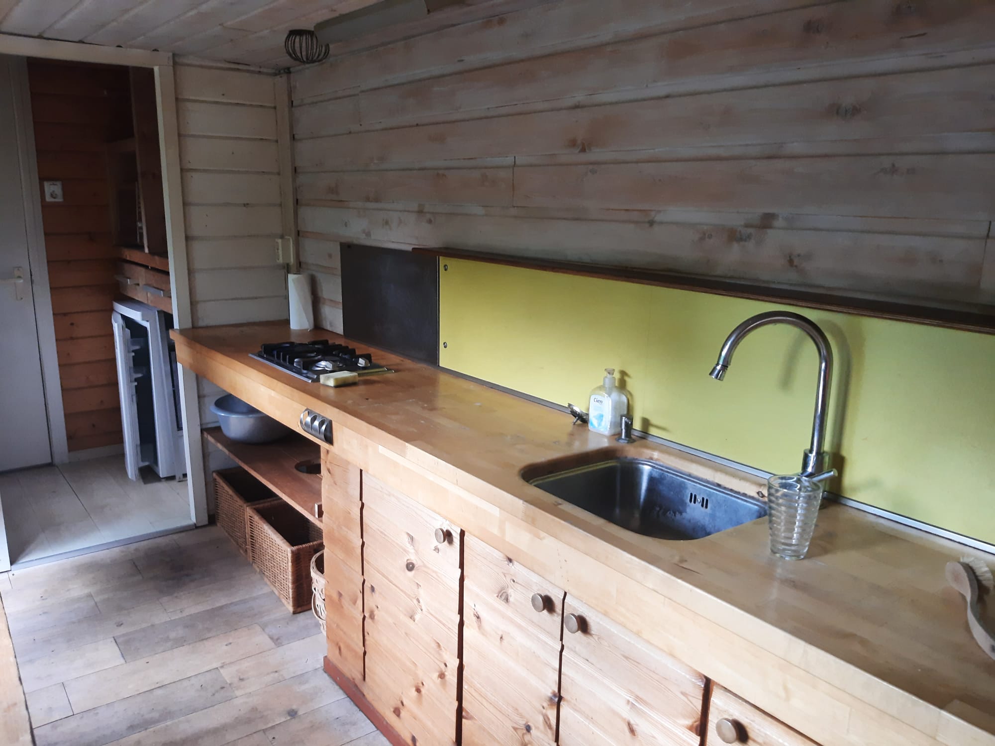 De houten recreatiewoning is in nette staat en bestaat uit een woonvertrek en een slaapvertrek, welke aan elkaar zijn geschakeld middels een gang met keuken. Hier bevinden zich tevens het toilet en de douche. Het woongedeelte met zithoek is voorzien van een rieten dak. Op het perceel is ook een berging aanwezig voor o.a. uw tuingereedschap.