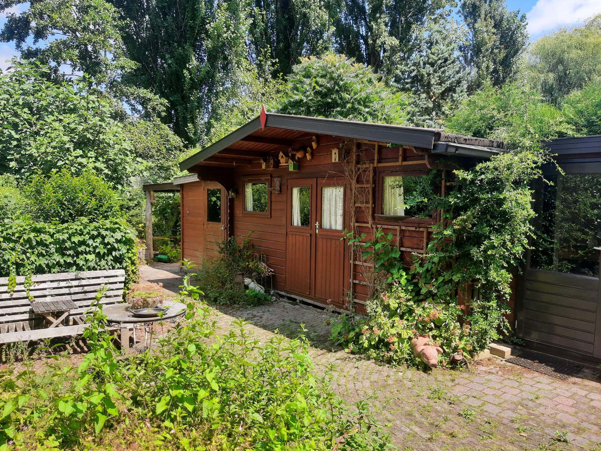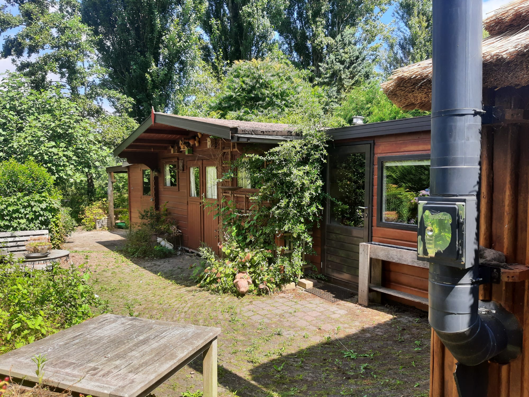 ONDER BOD: houten recreatiewoning met prachtige tuin, volop zon en schaduwplekken aanwezig!